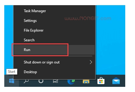 1. จากหน้า Desktop ให้เปิดกล่อง Run โดยการคลิกขวาที่ปุ่ม Start หรือกดปุ่ม Windows + R บนแป้นพิมพ์