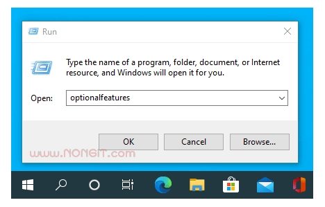 2. จากนั้นให้พิมพ์ “optionalfeatures” ลงในช่อง Open แล้วคลิก Ok หรือ Enter